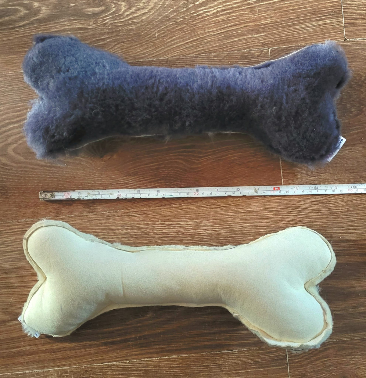 Kość duża Zabawka dla psa z naturalnego futra owczego/skóry owczej z wypchaniem runem owczym.